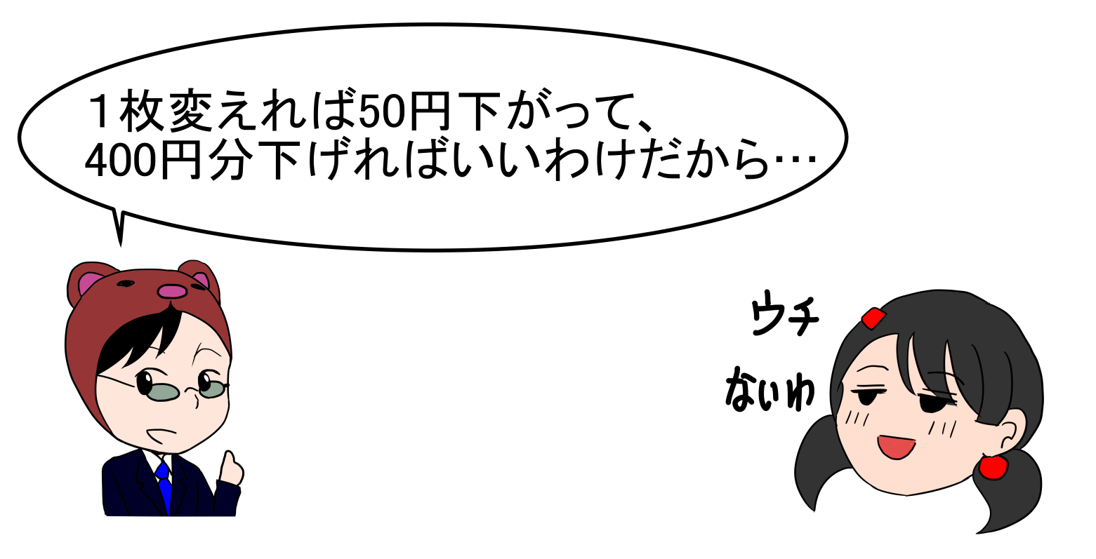 すると合計金額は50円下がって1350円になるのが分かるかな?
